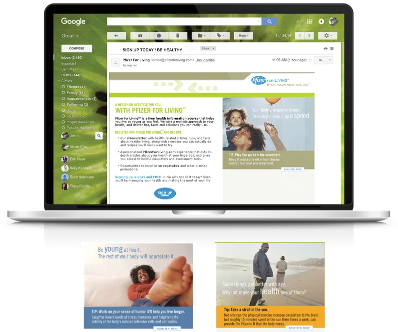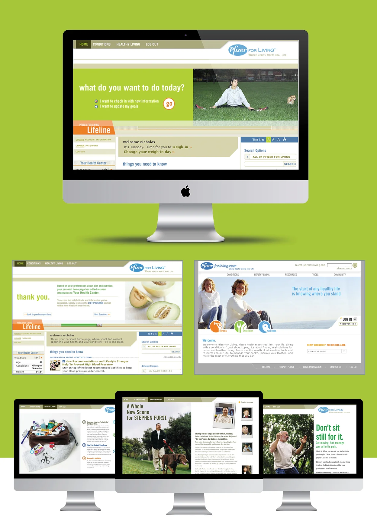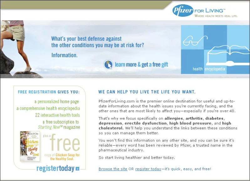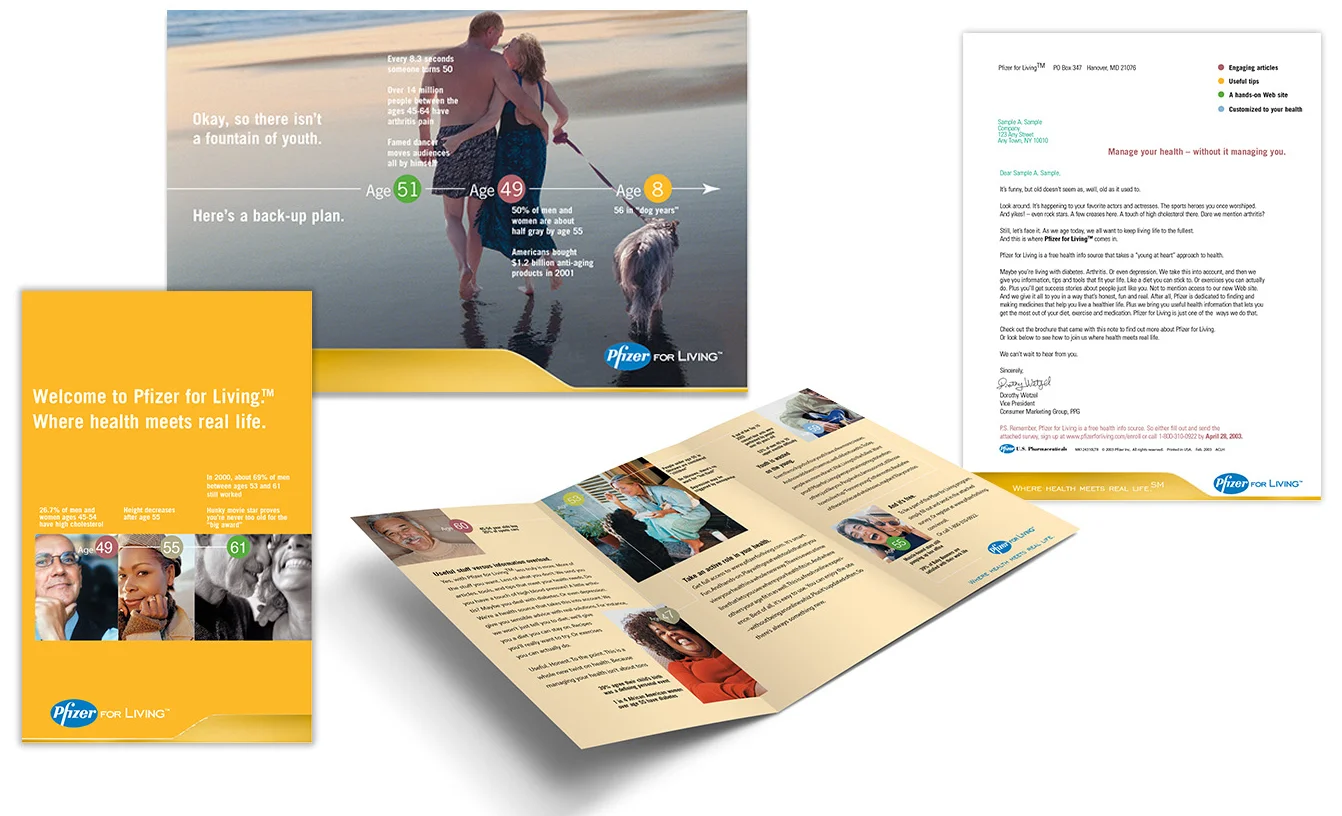 Pfizerforliving.com was a powerful wellness tool featuring loads of of customizable information about health, medication and living life to its fullest. Members created a personal health profile that created their very own version of PFL.com. Calculators, health meters, and other useful tools kept the information fresh and relevant. It allowed Pfizer to have an ongoing and active dialogue with customers.